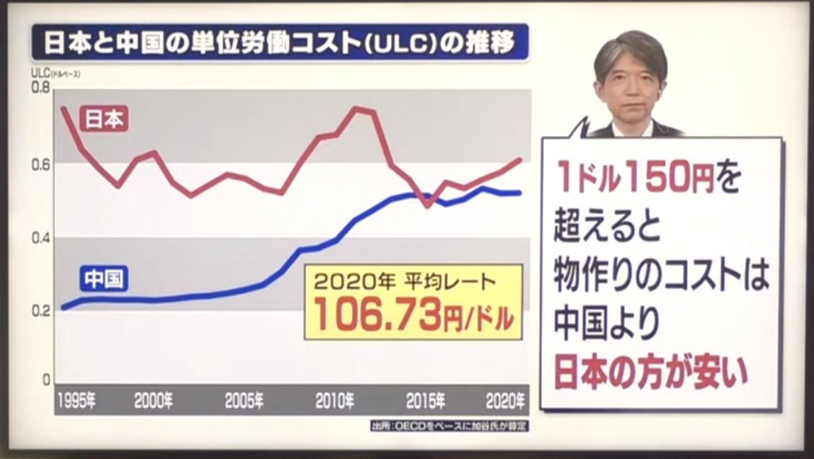 ドル150円を超えると日本と中国の労働単価が逆転する、