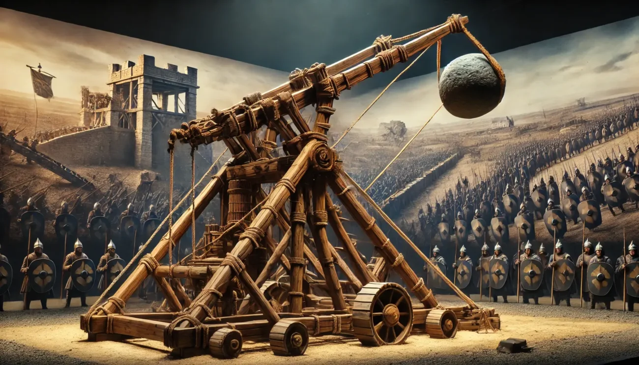 このタイプの投石機(トレビュシェット)が出てきたのは中世やで