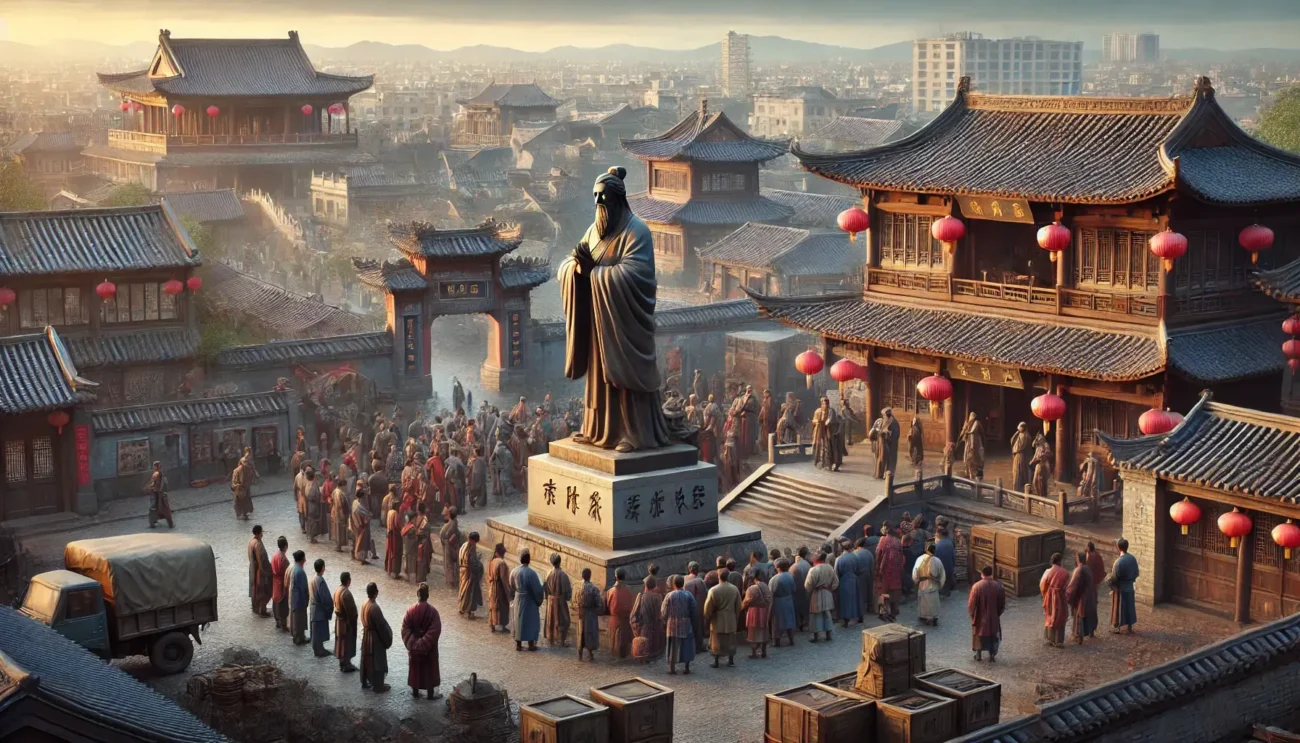 孔子をまつるため没後の紀元前478年に創建された「孔子廟(びょう)」が曲阜市中心部にある。多数の門をくぐり、本殿にあたる大成殿にたどり着くと、ひざまずいてお参りする親子らでごった返していた。男性ガイドは「最近は子どもに礼儀を身に付けさせるため、孔子の教えを学ばせる親が多い」と解説する。
