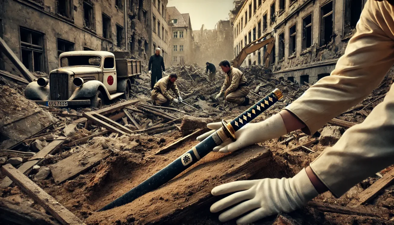 ドイツ・ベルリンのモルケンマルクト地区にある、第2次世界大戦中に破壊された住宅の地下室で、ベルリン国立モニュメント局の考古学者が発掘調査を行った。地下室は戦争中の瓦礫で埋まっており、そこから大戦末期に急いで処分されたらしいあぶみや手綱など様々な砲兵の軍用品が見つかった。その中に激しく腐食した短刀があり、当時考古学者らは軍のパレード用サーベルだと考えたという。出土品は全てベルリン国立博物館で保存される事となった。