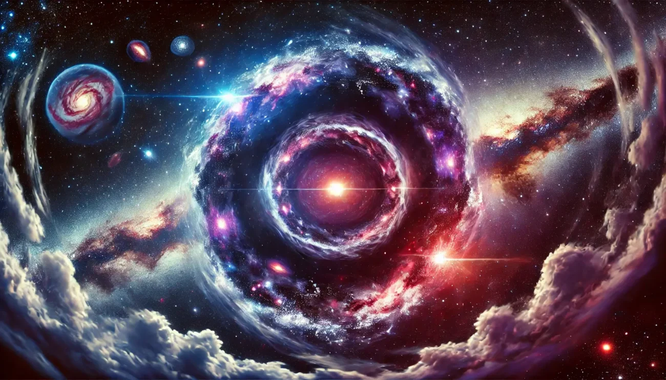 この宇宙の外の何もない、空間もないところをさらに離れた外側の別の宇宙がこっちの宇宙よりも重くてより強い力で収束しているとか