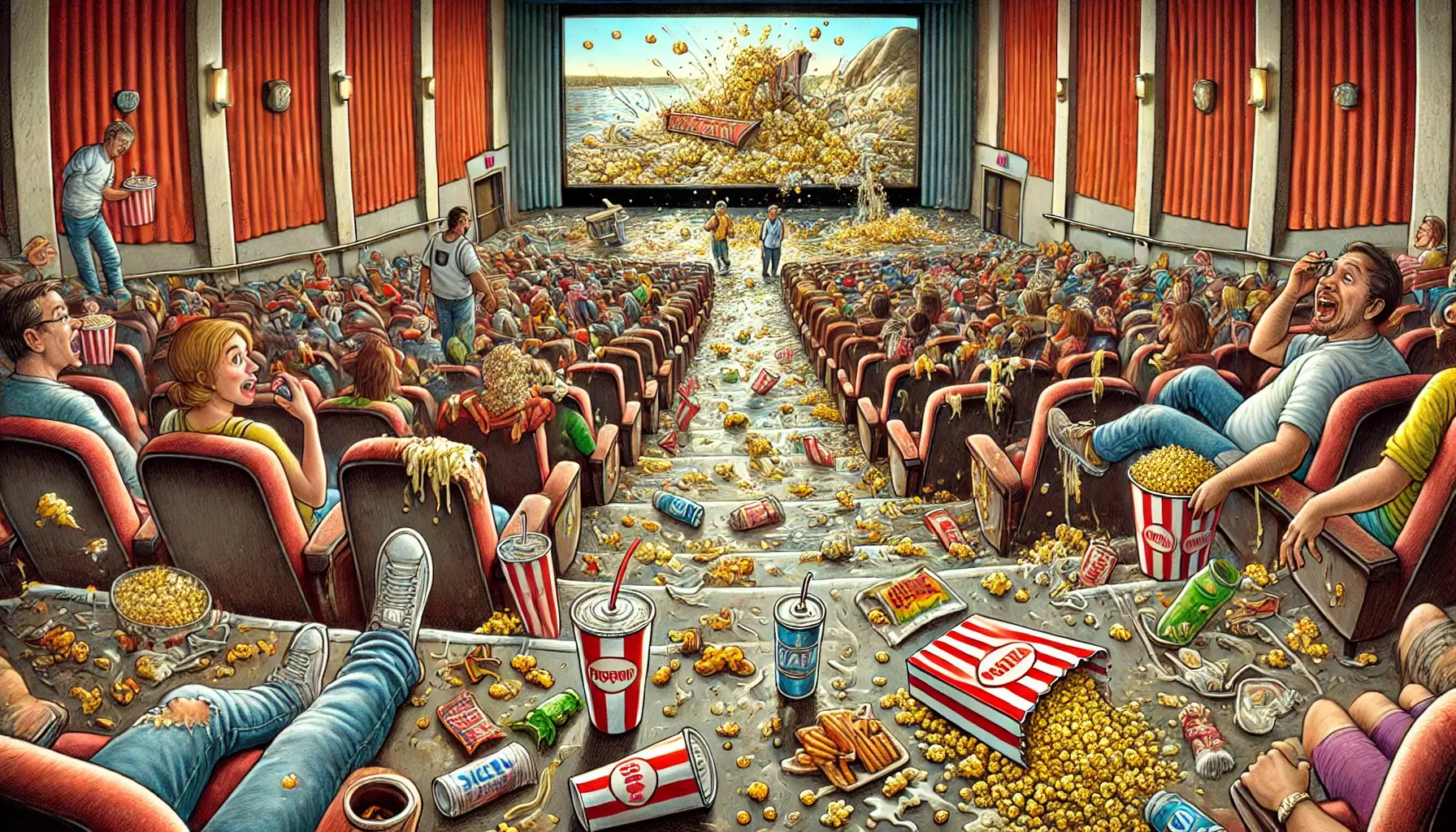 何のためにポップコーン買ってるんだ?ほとんどこぼしてる