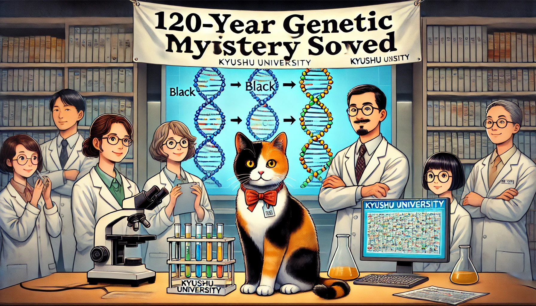 白、黒、茶(オレンジ)の毛がまだらに生える三毛猫の、体毛の色を決める遺伝子を特定したと、九州大の佐々木裕之特別主幹教授ら猫好き研究者チームが15日付で科学誌カレントバイオロジーに発表した。体の模様ができる仕組みは120年以上前から研究され、白い毛に関わる遺伝子は判明していたが、黒と茶色の毛に関与する遺伝子が分かっていなかった。