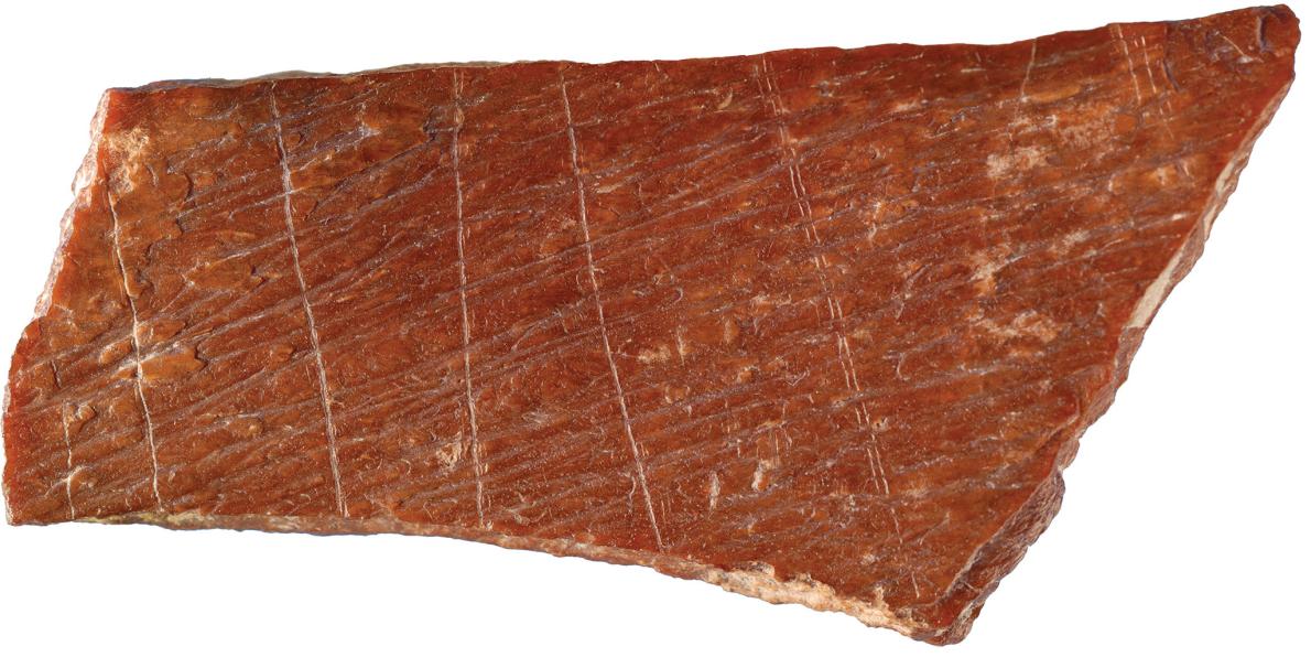 今から10万年以上前、現在の中国東部にあたる地域で、ある古代の人類が、動物の骨に模様を彫り込もうと考えた。その彫刻家は、日光にさらされて硬くなった肋骨のかけらを選んで、7本のほぼ平行な線を刻み込み、鮮やかな黄土色の顔料を塗りつけて目立たせた。
