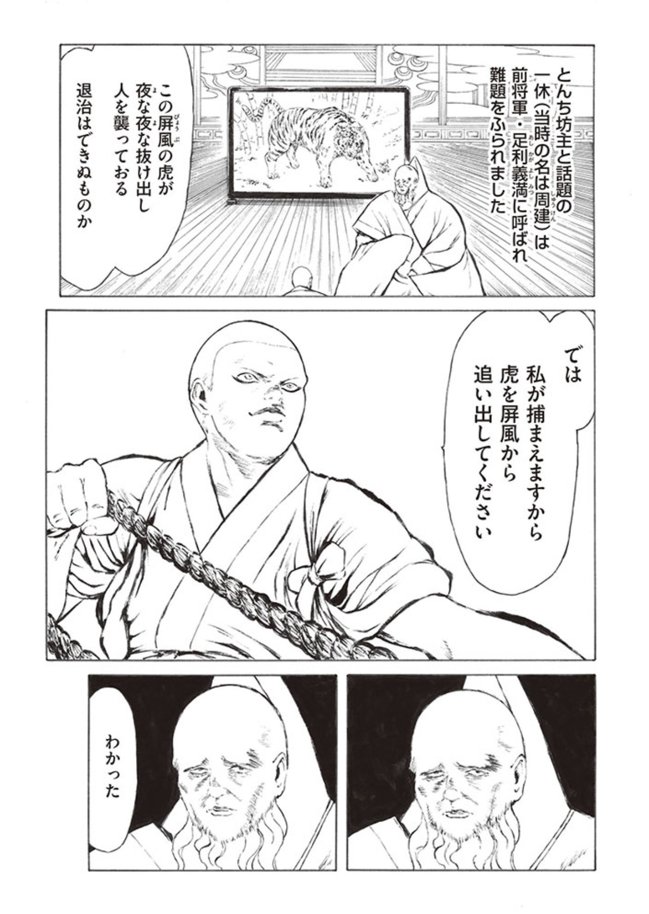一休「さあ、将軍様。わたしが虎を捕まえてごらんにいれます。