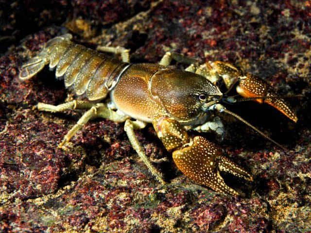 体色は茶褐色で、アメリカザリガニに比べて体や脚が太く、ずんぐりしている。