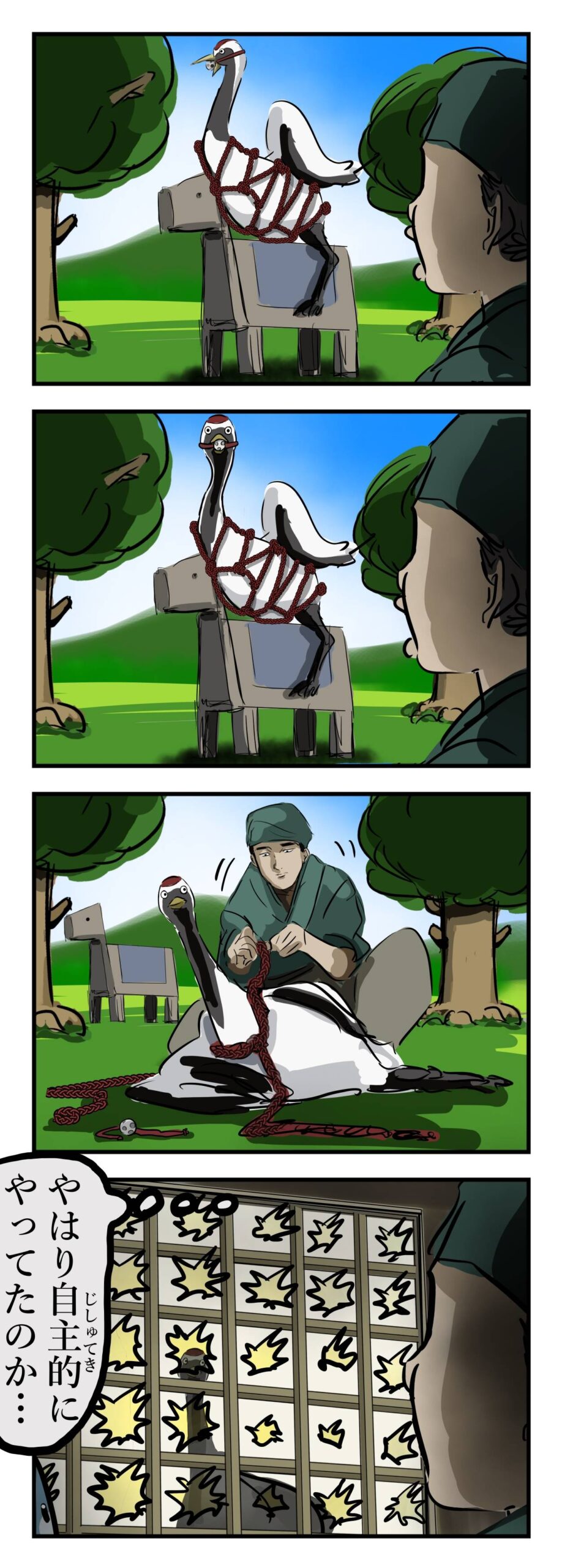「さっきわなにかかった鶴を助けてやった。今日はよいことをした。」