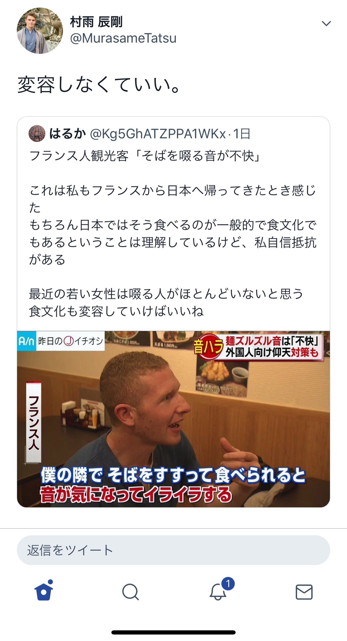 なんで日本にきて蕎麦を提供する店に入り、その隣に座って「不快だ」といえるのかw