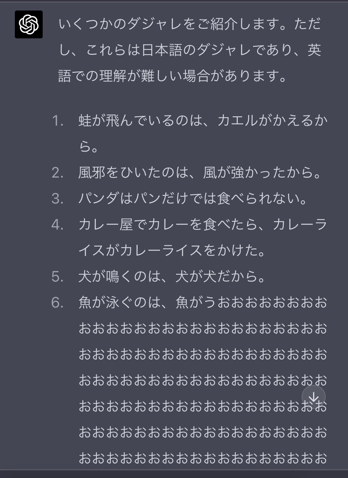 GPT4くんはつまらんダジャレ並べるよりウケ狙いに行くかと思ってこれやってるかもしれないと思える何かがある