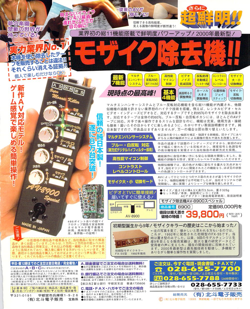 NTSCの輝度情報か色情報のどちらかにしかかかってないモザイクと色反転しかしてないぼかしはその機械で外せた。