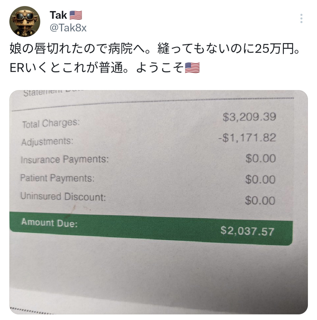 ちなみに日本でも無保険(保険証忘れたとは別)やとこんぐらい請求されても文句言えんで