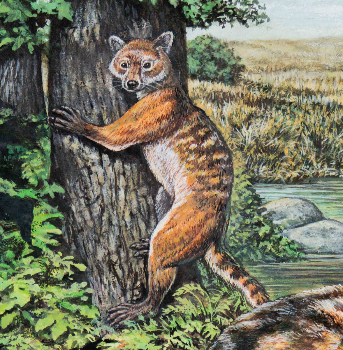 知られている限り、殻をもつ動物を食べた最古の哺乳類で、アライグマのような体格とネコのような爪をもち、古代の湿地で木を登ったり降りたりしていたようだ。