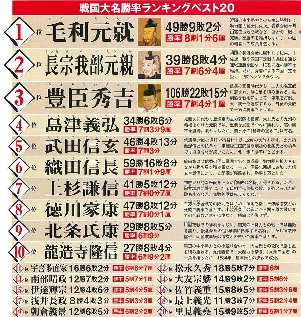 1回しか戦してなくて勝った戦国大名も調べたら出てきそうだなランキング作ったやつに言ってくる