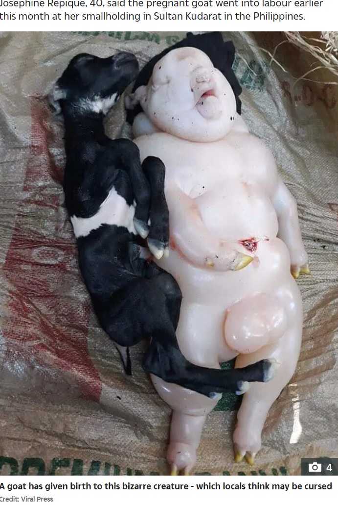 村のコミュニティーリーダーは「2匹のヤギが誕生した農家の裏庭には、奇妙な生き物を一目見ようとたくさんの人が集まった。1匹は被毛で覆われた普通のヤギだったが、もう1匹は被毛が全く無く、歯が生えていて人間そっくりだった。ただ誕生直後、奇形のヤギはタヒんでしまった」と語り、このように続けた。